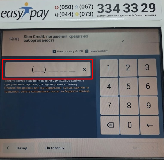 3️⃣ Введіть номер телефону за допомогою екранної клавіатури 📱